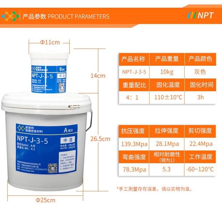 双组分,以陶瓷、金属碳化物、微型颗粒为骨材的耐磨复合材料,具有耐水、耐油、耐酸碱性。适用(-60℃-250℃)设备过流冲蚀、设备的大面积修复、设备预涂耐磨层,如旋流器、浮选柱、浮选机、泡沫槽、分级机、搅拌桶、溜槽、管件类、泵类等修复(典型用途见主要物理机械性能表)。